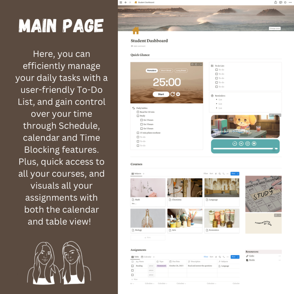 The Student Dashboard Notion template is your all-in-one academic companion, featuring a dynamic calendar, a central hub for important information, an organized to-do list, and quick access to your classes, providing students with a streamlined and efficient tool to manage their studies and stay on top of their academic journey.
